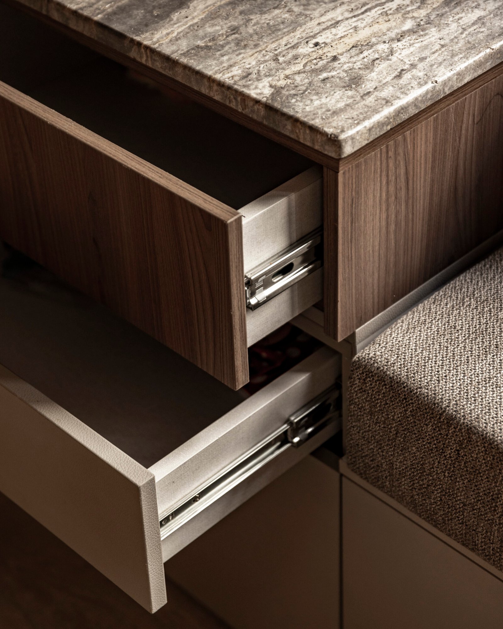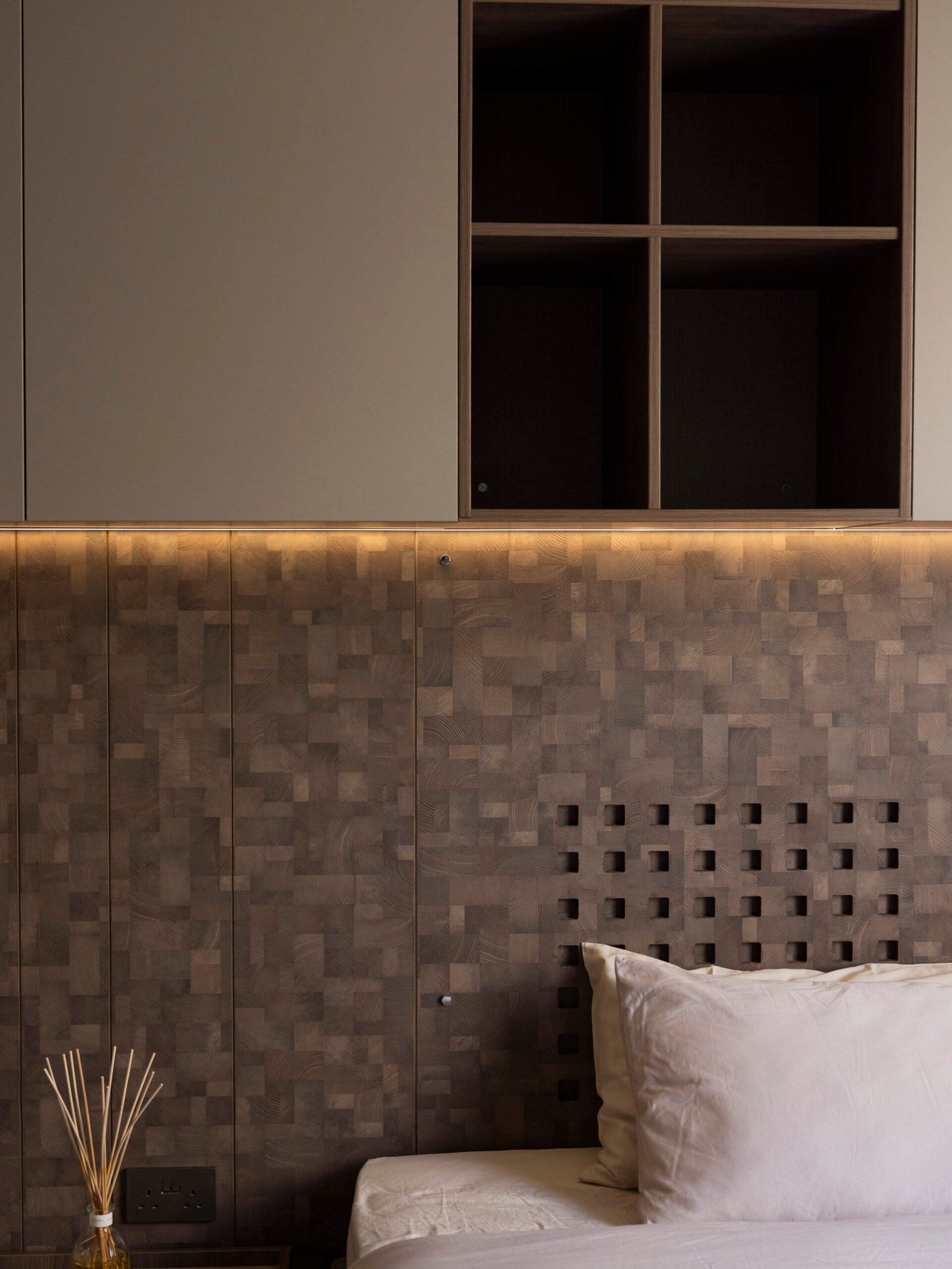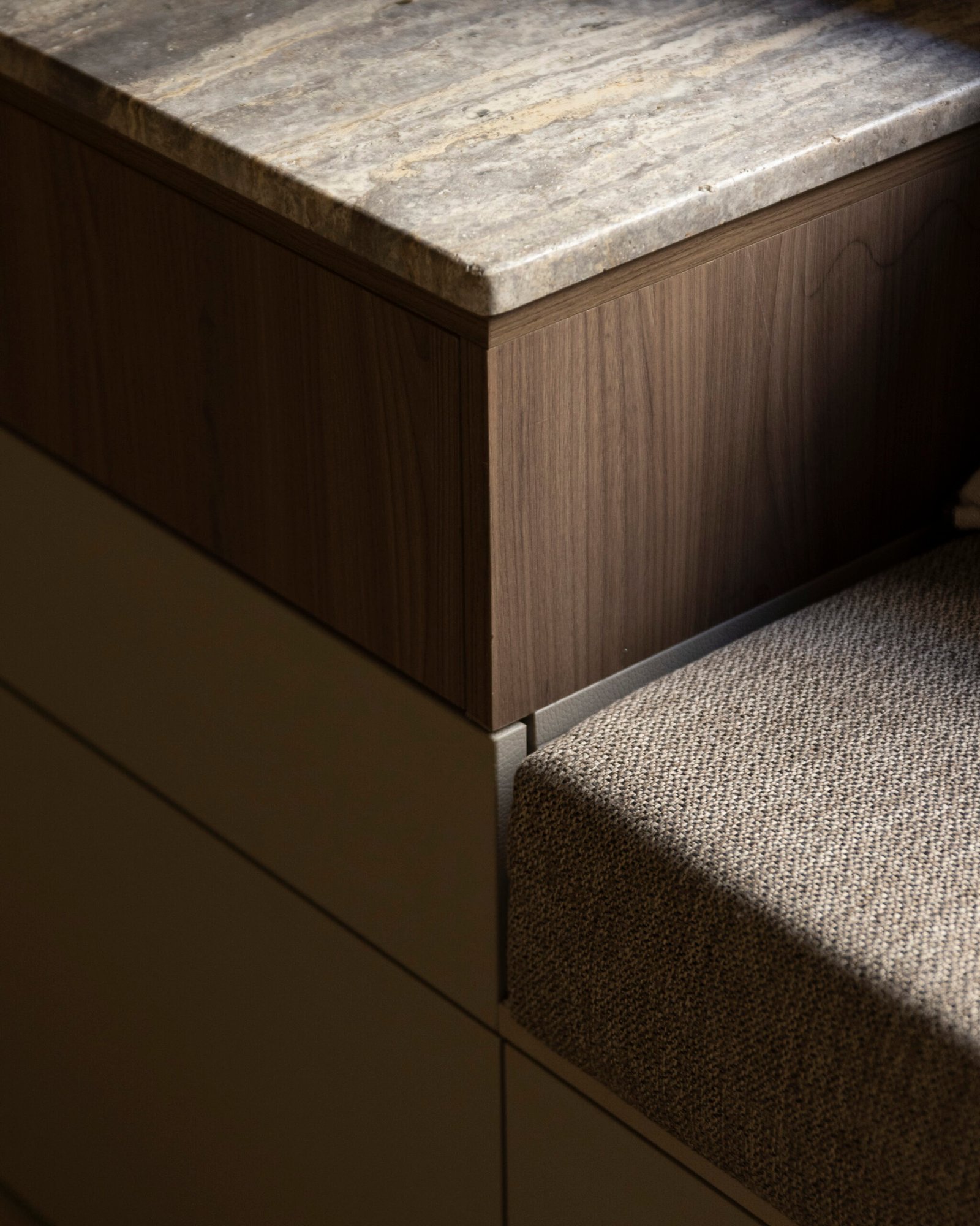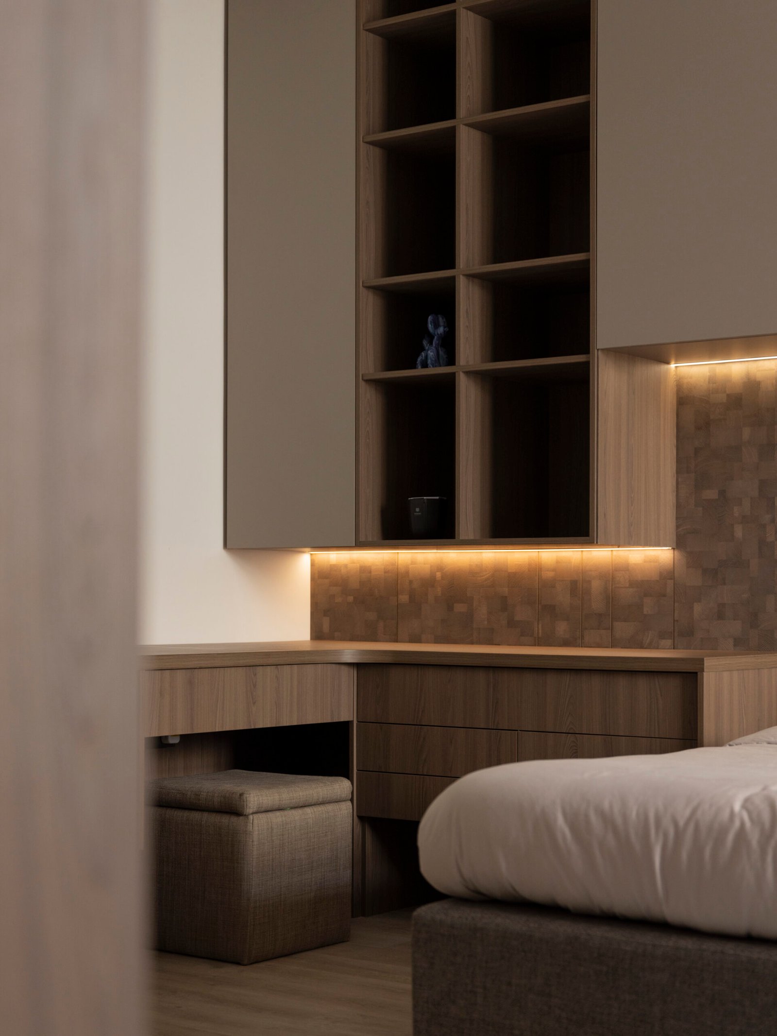Soft neutral tones, natural wood, and textured fabrics create a calm foundation, while refined detailing and custom joinery add sophistication and comfort.
